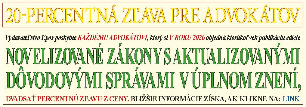 Zľava pre advokátov, resp. priznaná na základe dohody či zmluvy bude poskytnutá vo faktúre priloženej k zásielke objednaného tovaru.